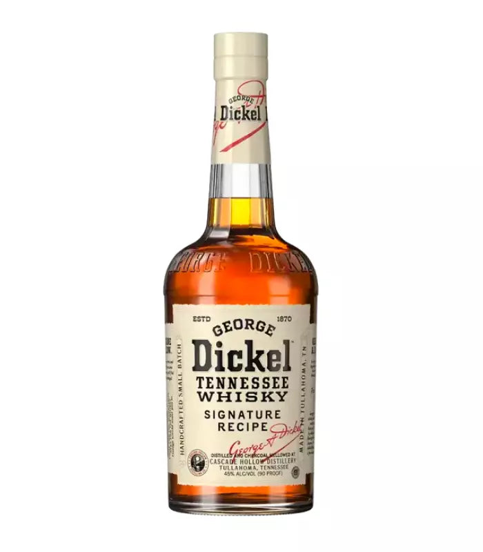 George Dickel Signature Recipe Tennessee Whisky is produced at Cascade Hollow Distilling Co. in Tullahoma, Tennessee. This expression is crafted from a mash bill of 84% corn, 8% rye, and 8% malted barley. After years of aging in charred American oak barrels, the whisky is charcoal-mellowed through the traditional Lincoln County Process, imparting smoothness while enhancing depth. Bottled at 90 proof, it’s known for bold character, layered flavors, and a finish that balances smoky richness with oaky sweetness.