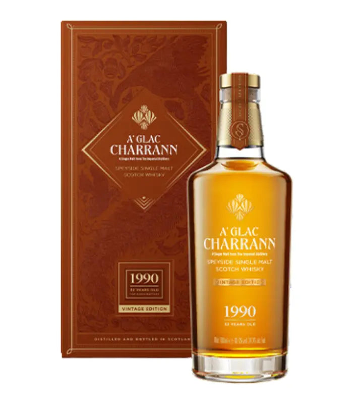 A'Glac Charrann 1990 Vintage 32 Year Old Single Malt Scotch Whisky represents a sublime example of the craftsmanship at the Imperial distillery. This exceptional 32-year-old vintage has been lovingly matured in American oak barrels and bottled at cask strength to capture the full intensity of its flavors without any dilution or filtration. This process ensures a whisky of unparalleled depth and complexity, reflecting the character and history of its origin.