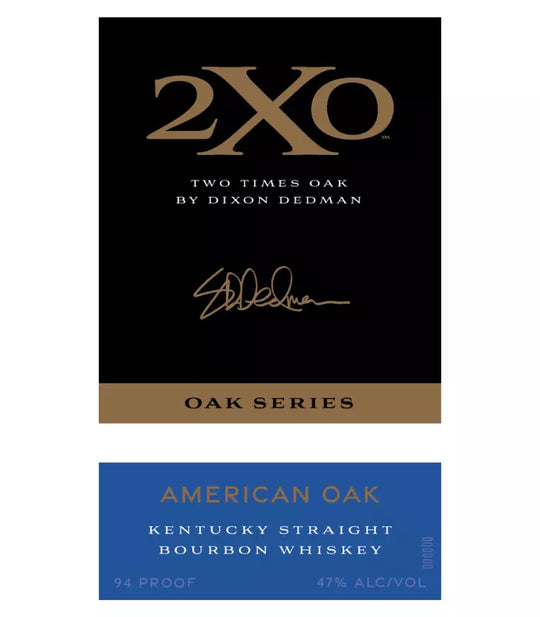 The 2XO Oak Series American Oak Kentucky Straight Bourbon Whiskey is a product from the new whiskey brand 2XO, created by renowned blender Dixon Dedman. The name "2XO", which stands for "Two Times Oak", reflects its unique blending process, where Dixon re-barrels his hand-selected whiskey into new charred oak barrels. This process results in a unique combination of intense flavors, character, and complexity.