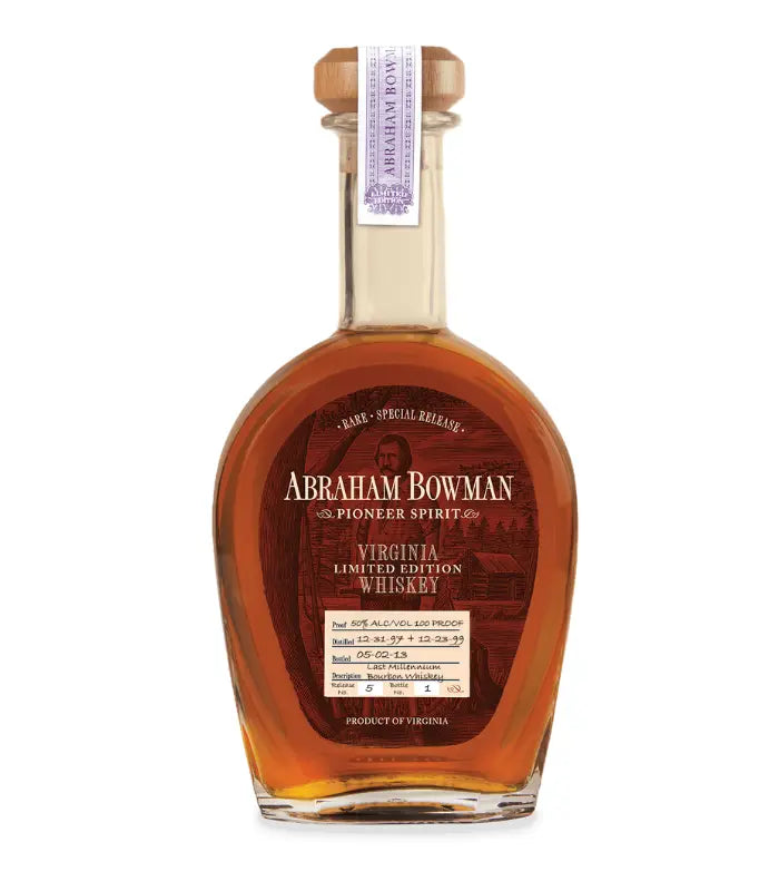Unveil the richness of history with every sip of the Abraham Bowman Virginia Limited Edition Whiskey Release No. 5 Last Millennium Bourbon Whiskey. This exquisite bourbon, distilled as the last millennium drew to a close, represents a rare and unparalleled craftsmanship in the world of American whiskey.