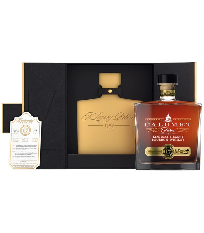 To commemorate 100 years of Calumet Farm, this 17-year-old Kentucky Straight Bourbon is presented in a stunning glass decanter, symbolizing a century of craftsmanship and excellence. Aged for nearly two decades, this limited-edition release exemplifies the depth, character, and tradition that have made Calumet Farm legendary in both bourbon and horse racing.