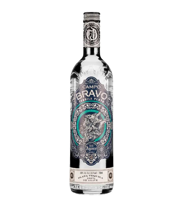 Campo Bravo Tequila Plata tells a story from farm to bottle. This additive-free tequila takes pride in its 100% Estate Grown Blue Weber Agave, each hand-selected for superior quality. Campo Bravo, meaning "Brave Field," is the creation of agave farmers with a vision to over-deliver in terms of character, quality, and tradition. Symbolized by "The Wolf," it echoes themes of guardianship, ritual, loyalty, and spirit, encouraging trust in one's own instincts and control over one's life. With an alcohol by volume (ABV) of 40% (80 proof), this tequila is a substantial presence.