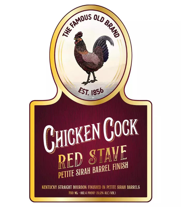 Chicken Cock Red Stave Petite Sirah Barrel Finish Whiskey is a high-rye Kentucky bourbon that undergoes an innovative secondary maturation in J. Wilkes Petite Sirah wine barrels from California. This finishing process infuses the whiskey with deep red-fruit character and gentle tannins, balancing its robust rye spice with layers of dark fruit and oak. Bottled at 102.4 proof and non-chill filtered, Red Stave embodies the brand’s modern approach to American whiskey while maintaining a nod to its pre-Prohibition heritage.