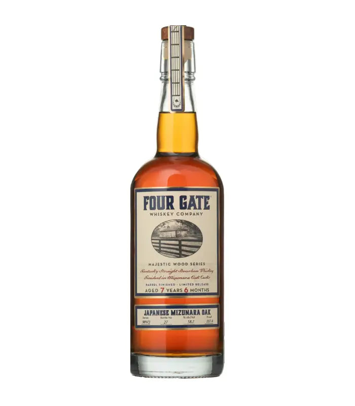 Four Gate Majestic Wood Series Japanese Mizunara Oak Finish Aged 7 Years and 6 Months is an exceptional offering that marries the traditional craftsmanship of Kentucky Straight Bourbon Whiskey with the distinctive influence of rare Japanese Mizunara Oak barrels. This fusion creates a unique and sophisticated spirit that stands out in the world of whiskey.