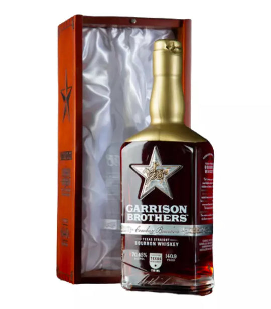 Experience the charm of Garrison Brothers Cowboy Bourbon 2023 'Hazmat'. A welcoming scent of freshly-cut wood paired with golden wheat bread sets the stage for a taste expedition.