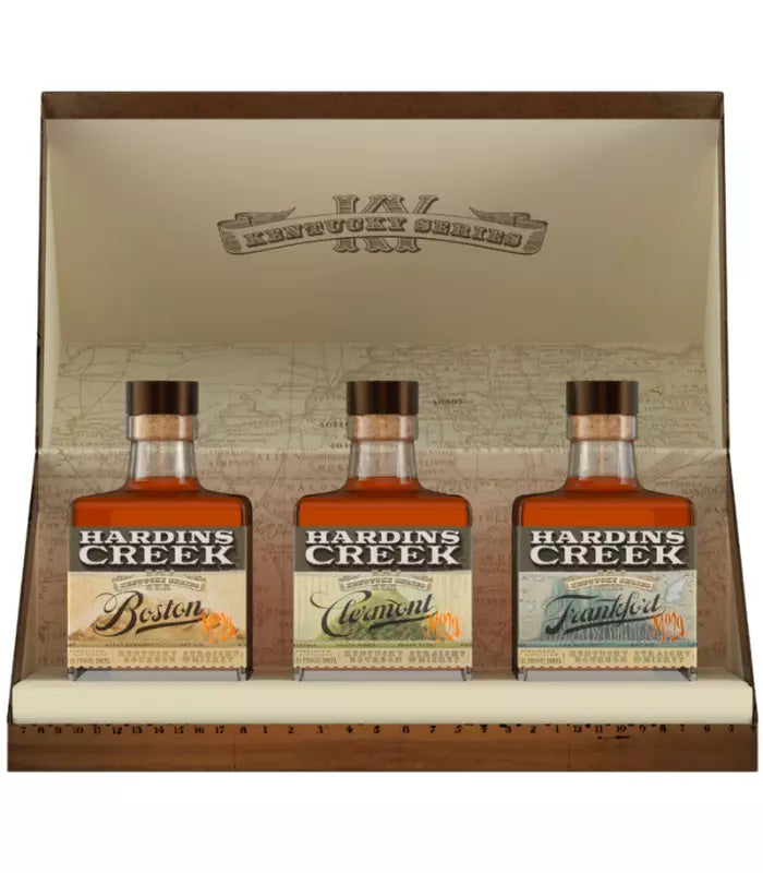 The Hardin's Creek Kentucky Series Trio offers a unique tasting experience, inviting whiskey enthusiasts on a journey through the diverse landscapes of Kentucky's most iconic distilling locations: Clermont, Frankfort, and Boston. Each location has left its distinct imprint on the whiskey over a period of 17 years, resulting in three unique and complex expressions. This limited-time offering provides an opportunity to explore the nuances and variations imparted by different environments within Kentucky.
