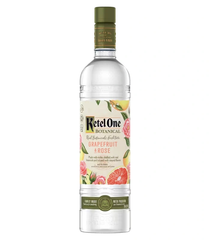Ketel One Botanical Grapefruit & Rose is crafted with real botanicals—zesty fresh‑squeezed grapefruit and refined rose petals—distilled with Ketel One vodka in copper pot stills, then infused for a crisp, elegant flavor. With no added sugar or artificial ingredients, it delivers a light, fresh spirit ideal for spritzes and low-calorie cocktails.