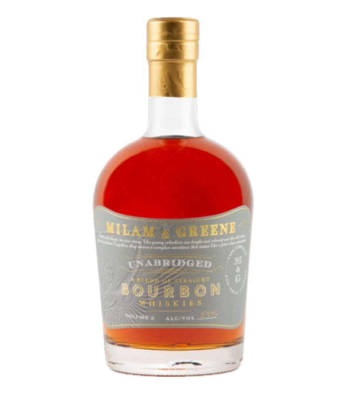 Milam & Greene Unabridged Bourbon Whiskey Volume 3 is a tribute to the art of whiskey blending, showcasing an unfiltered, cask-strength bourbon experience that remains untouched and authentic. Building upon the acclaimed success of Volumes 1 and 2, this release takes the series to new heights, offering a blend of carefully selected bourbons aged between 3 ½ and 10 years, sourced from Kentucky, Texas, and Tennessee. Presented in an enclosed box, it makes the perfect gift for any bourbon enthusiast.