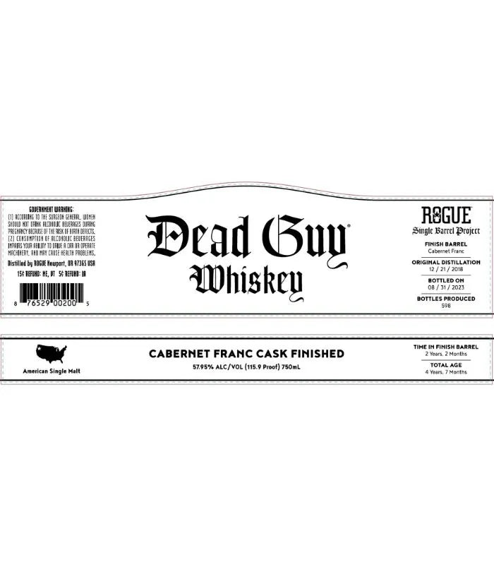 Rogue Spirits Single Barrel Project Cabernet Franc Cask Finished Dead Guy American Single Malt Whiskey